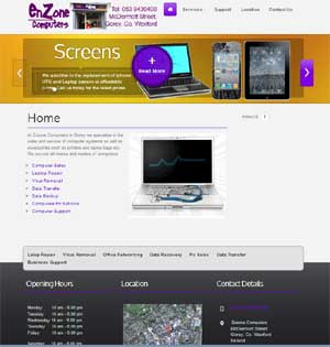 We were asked to give a website a make over for Enzone Computers in Gorey. Their previous web presence was not appropriate for where the business is heading nor the services they offer these days. Originally an Internet Cafe and business now offers a full Sales and support service to the North Wexford area.