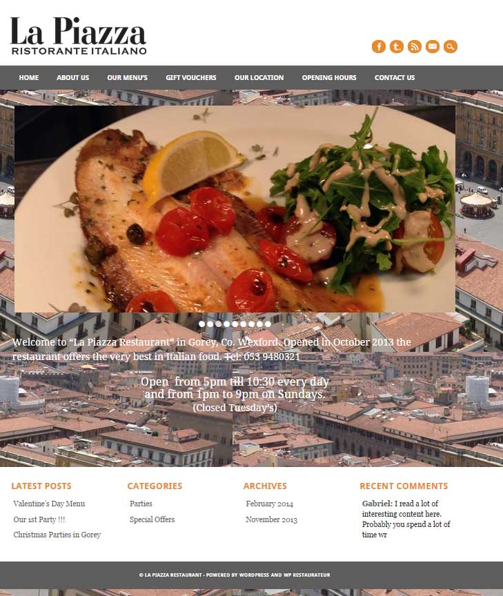 I called in and met the owners and we discussed the steps involved and we immediately wet about to secure the domain name www.lapiazza.ie for them and then set up the email address eat@lapiazza.ie on their phones as we also have hosting servers and we manage emails for clients too.
