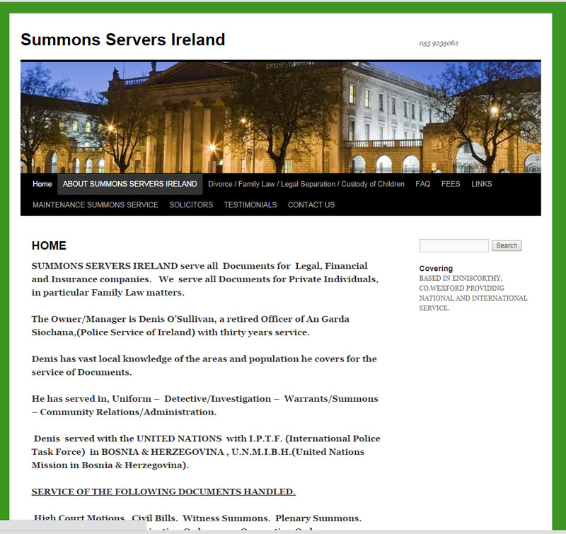 We were approached by this client who had found us on Google and read our blog and decided to get in touch. After recently setting up his new business of delivering summons he know that one of his main tools for promoting himself was going to be using the Web. In Particular making sure he gets listed on Google’s search for phrases that are key to his industry.